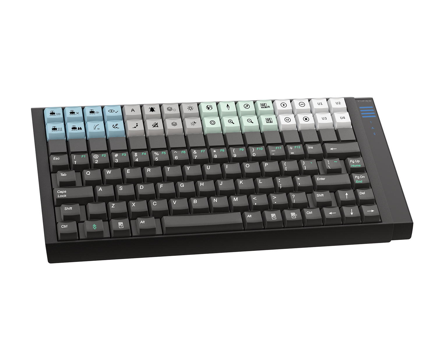 Tipro’s F8 Keyboard is a 128-key keyboard with a compact footprint. It has both USB and PS/2 interface. It is robust and features high quality Cherry MX individual keyswitches for excellent tactile feedback and long life-time. The F8 Compact Keyboard is programmable like all other Tipro devices.